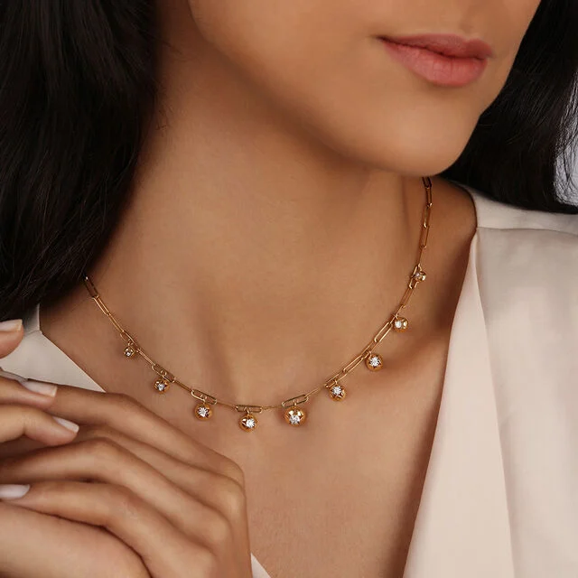 Do you love stars? Then, make them wearable with this choker necklace. This celestial necklace brings that dreamy night sky vibe to your jewellery game.